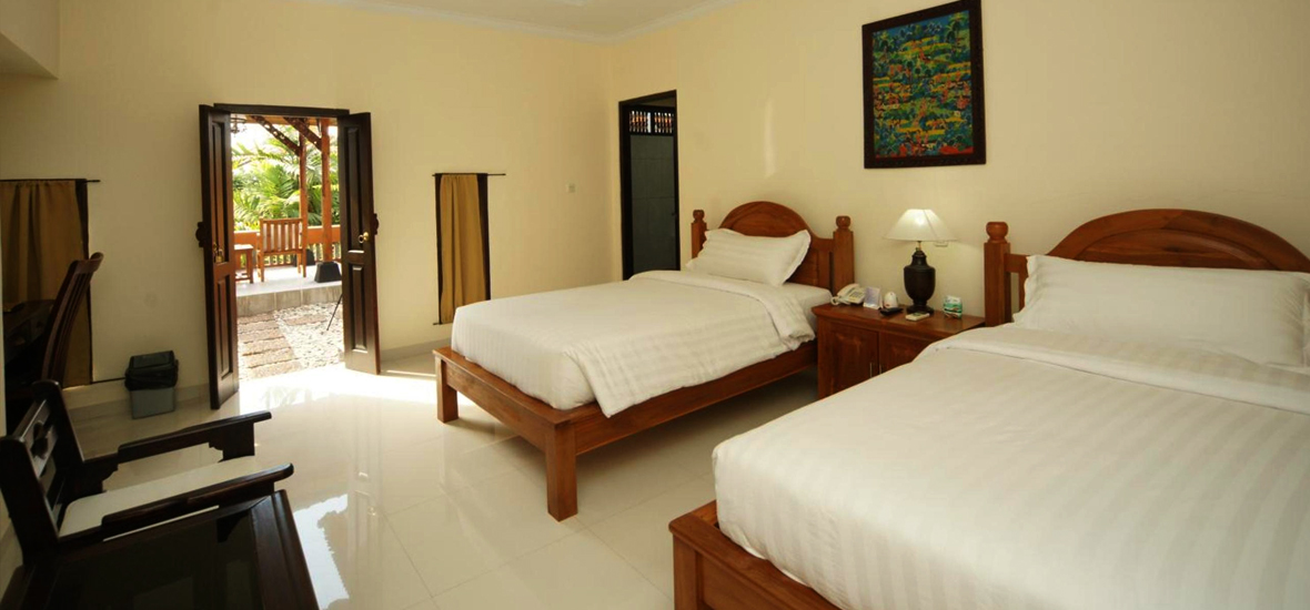Accommodate for two adult plus one children. Bathtub or shower facilities are included in an private bathroom.